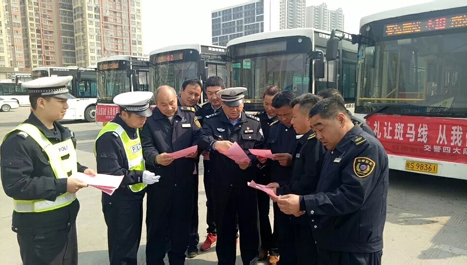 4月5日上午,公交公司聯(lián)合市公安局交警支隊四大隊,在市政公園公交首末站開展“禮讓斑馬線 守法文明行”的宣傳活動。