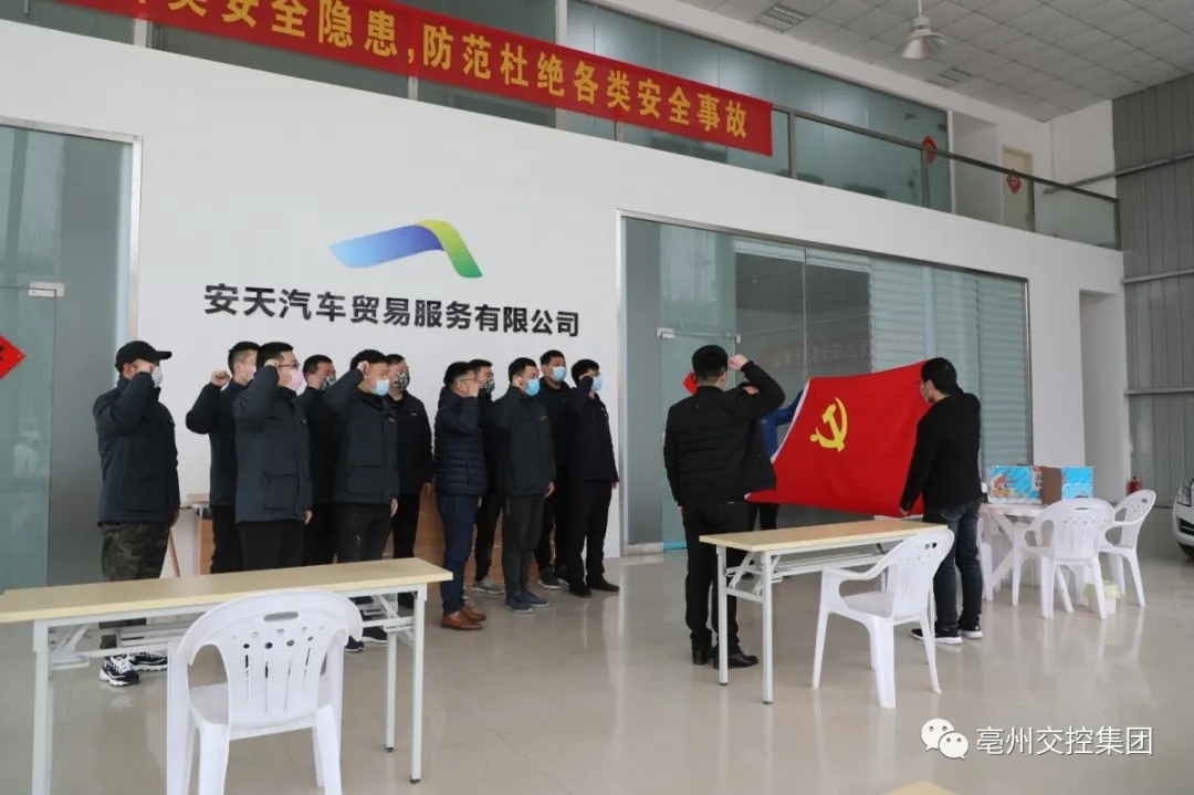 活動中,全體黨員齊唱國歌,重溫入黨誓詞,交納黨費,并集體觀看了疫情防控警示教育片。隨后,“黨員服務(wù)隊”來到安天汽貿(mào)公司,學(xué)習傳達上級疫情防控會議精神和疫情防控知識,隨著全面復(fù)工復(fù)產(chǎn)工作的有序推進,疫情防控仍然不能有“松口氣”的思想,引導(dǎo)廣大黨員切實提高政治站位,認真落實上級決策部署,把初心寫在行動上,把使命落在崗位上,全力投入到疫情防控和生產(chǎn)穩(wěn)定中。接著,黨員們在現(xiàn)場開展了衛(wèi)生消毒志愿服務(wù)活動。