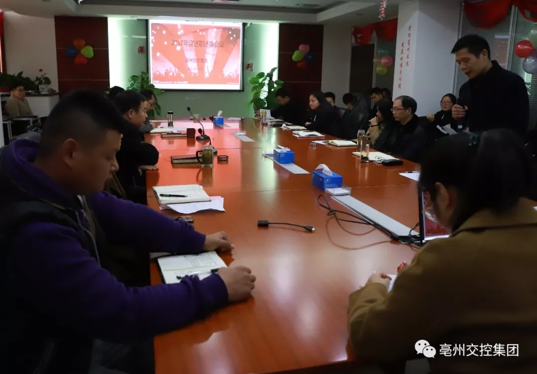 12月28日,亳州交控集團(tuán)在八樓會議室召開了員工年終述職大會。集團(tuán)黨委書記、董事長王鍇參加會議,黨委副書記、紀(jì)委書記魏孛主持會議。