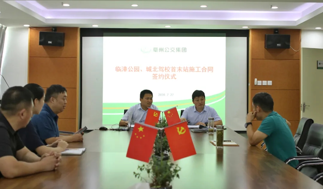 近日,公交集團總經(jīng)理徐志在五樓會議室與施工方安徽通康公司常務(wù)副總經(jīng)理李向陽簽訂公交首末站施工合同及《反腐附加協(xié)議》,公交集團董事長孟東曉,基建辦、紀檢審計部等相關(guān)負責人參加會議。