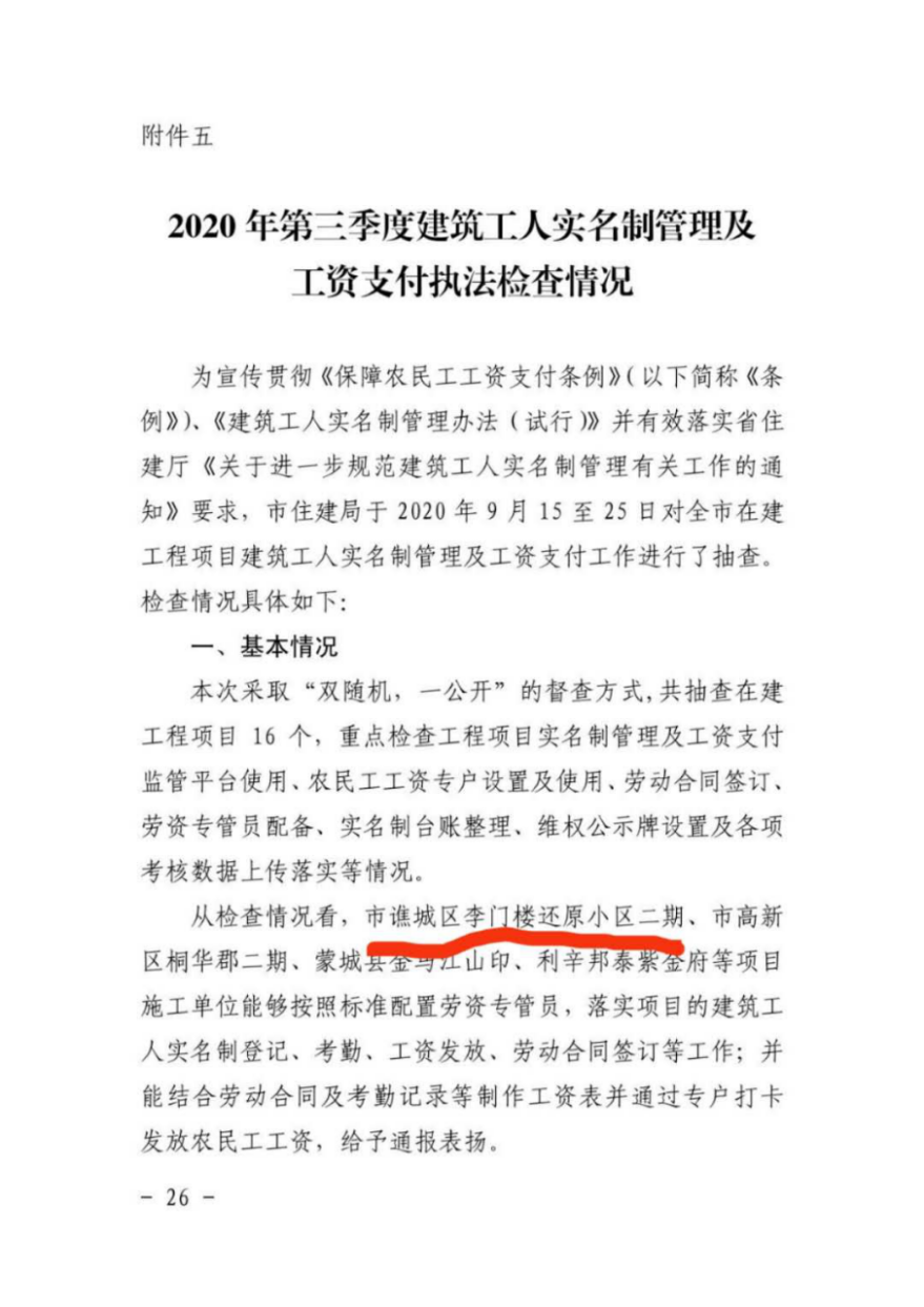 近日,安徽通廬置業(yè)有限責(zé)任公司開發(fā)建設(shè)的李門樓還原小區(qū)(二期)建設(shè)項(xiàng)目建筑工人實(shí)名制及工資支付管理工作措施落實(shí)到位,榮獲亳州市住建局通報(bào)表?yè)P(yáng)。