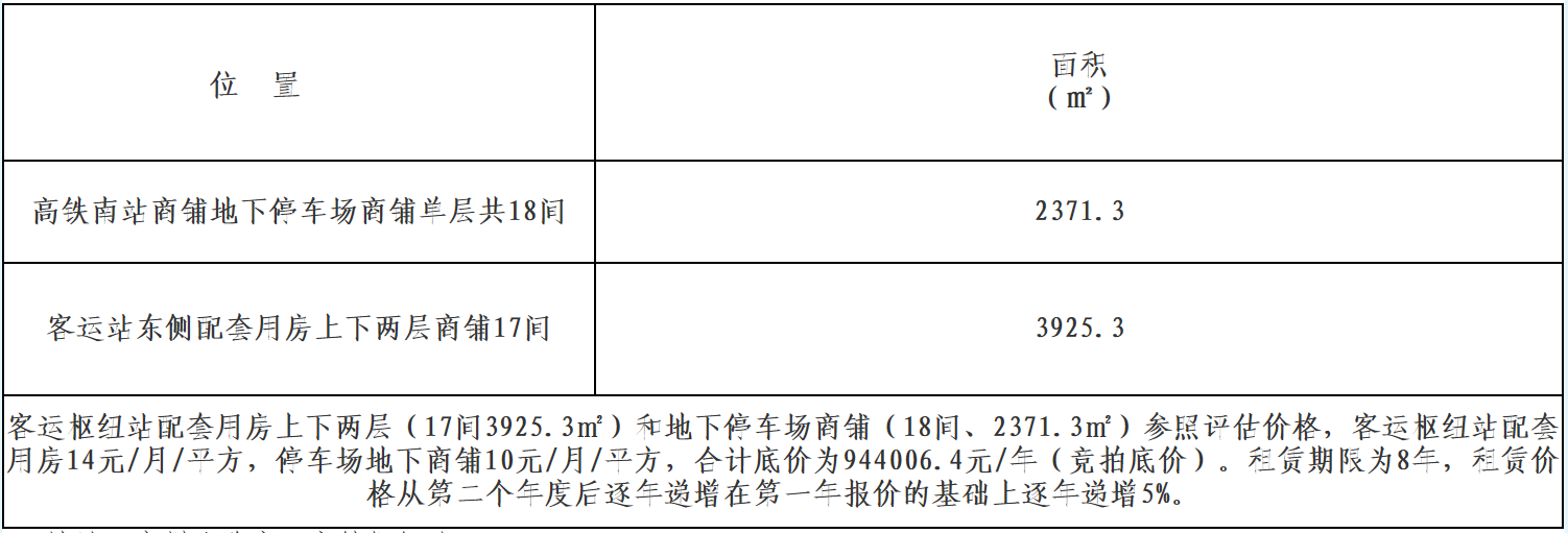 高鐵南站商鋪資產(chǎn)招標(biāo)項(xiàng)目交易公告