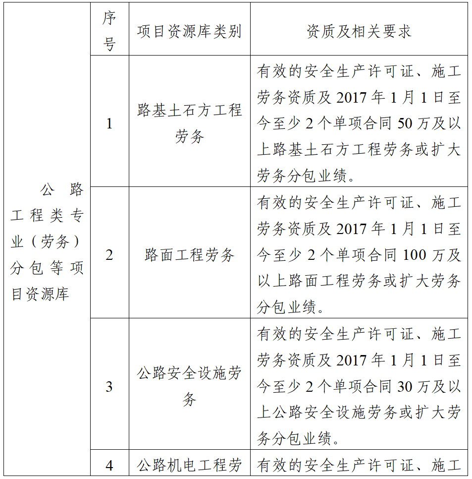 (一)項目概況:為保證公路工程等項目的招標效率和質量,安徽通康建設結合實際情況,擬建立安徽通康建設工程有限公司專業(yè)(勞務)分包項目資源庫。根據有關法律法規(guī),現面向社會公開征集公路工程類專業(yè)(勞務)分包等項目資源庫供應商。