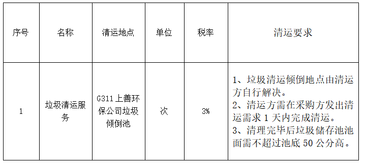 (三)交貨期:清運(yùn)方需在采購(gòu)方發(fā)出清運(yùn)需求1天內(nèi)完成清運(yùn)。