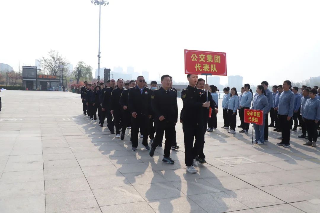 上午9時,儀式正式開始,伴隨著慷慨激昂的旋律,集團(tuán)本部、公交集團(tuán)、安車集團(tuán)、上善環(huán)保、建筑開發(fā)事業(yè)部、商業(yè)運(yùn)營事業(yè)部及通康通達(dá)利公司共七支代表隊(duì),隊(duì)列整齊,步調(diào)一致,喊著嘹亮的口號依次入場,盡顯集團(tuán)職工昂揚(yáng)向上的精神風(fēng)貌。入場儀式完畢,全場高唱中華人民共和國國歌。隨后,集團(tuán)黨委委員、副總經(jīng)理王翔宇發(fā)表致辭,鼓勵參賽人員以飽滿的熱情、昂揚(yáng)的斗志、拼搏的精神投身到各項(xiàng)比賽活動中去。