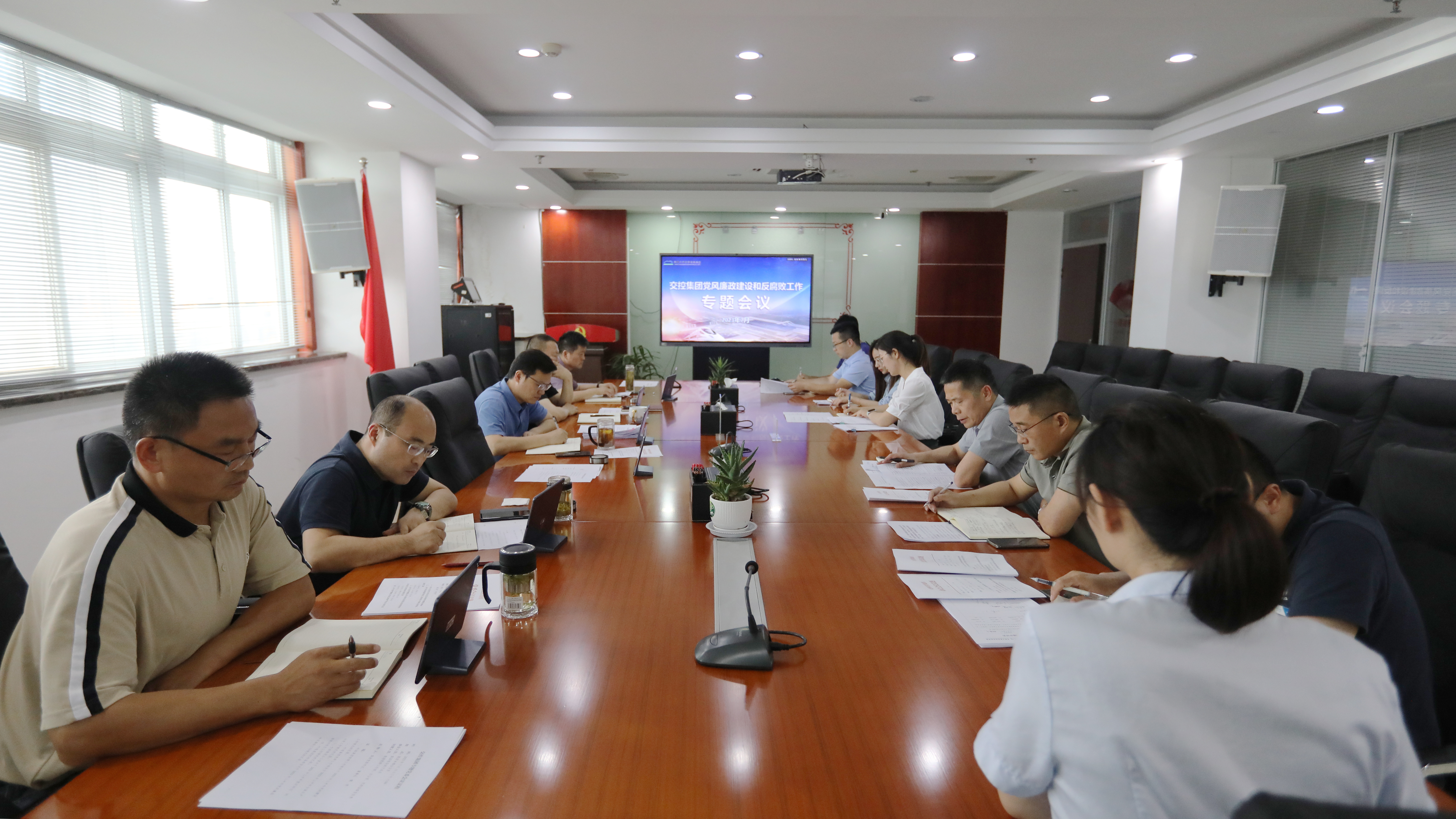為貫徹落實全面從嚴(yán)治黨要求,扎實推進(jìn)黨風(fēng)廉政建設(shè)和反腐敗工作,7月13日下午,交控集團(tuán)黨委召開黨風(fēng)廉政建設(shè)和反腐敗工作專題會議。集團(tuán)黨委書記、董事長魏孛主持會議,集團(tuán)領(lǐng)導(dǎo)班子成員、有關(guān)部室負(fù)責(zé)人參加會議。