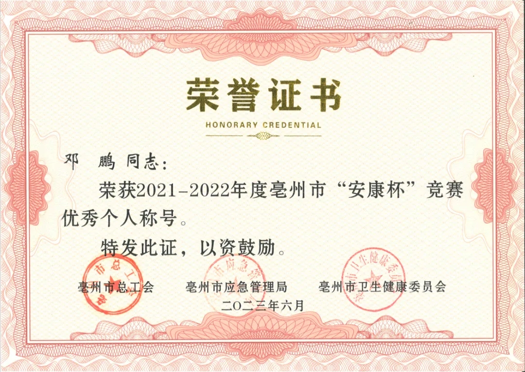2021-2022年度亳州市“安康杯”競賽優(yōu)秀個人