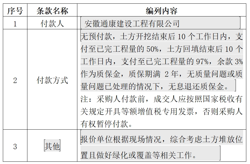 (五)最高限價(含增值稅,稅率9%):9.5元/開挖1m³,9.5元/回填1m³ ,供應(yīng)商按固定單價報價。合同為固定單價合同。報價超出固定單價或為可能影響合同履約異常低價的,按無效響應(yīng)處理。報價包含但不限于以下費用:項目清表、土方工程開挖、外運、清基槽、刷坡、土方回填(含室內(nèi))、壓實等所需的人工、機械機具、運輸車輛以及為滿足安全文明環(huán)保施工提供所需的灑水車、霧炮機、裸土覆蓋以及車輛進出所需的鋼板,沖洗人員、高壓沖洗設(shè)備及施工用水電費用、渣土處理費等以及因?qū)I(yè)分包范圍內(nèi)需要協(xié)調(diào)政府相關(guān)部門等工作。
