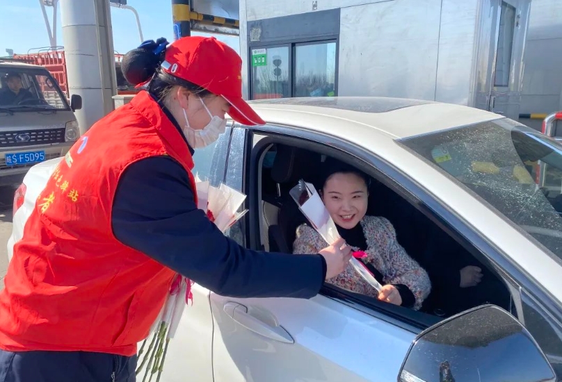 “您好!送您一朵鮮花,祝您三八節(jié)快樂(lè)!”在309收費(fèi)站收費(fèi)廣場(chǎng)和站區(qū)內(nèi),“紅色驛站”志愿者們將精心準(zhǔn)備的節(jié)日花朵帶到一線,送給堅(jiān)守一線的女職工和過(guò)往的女司乘朋友,給大家送去節(jié)日的祝福及溫馨的問(wèn)候。