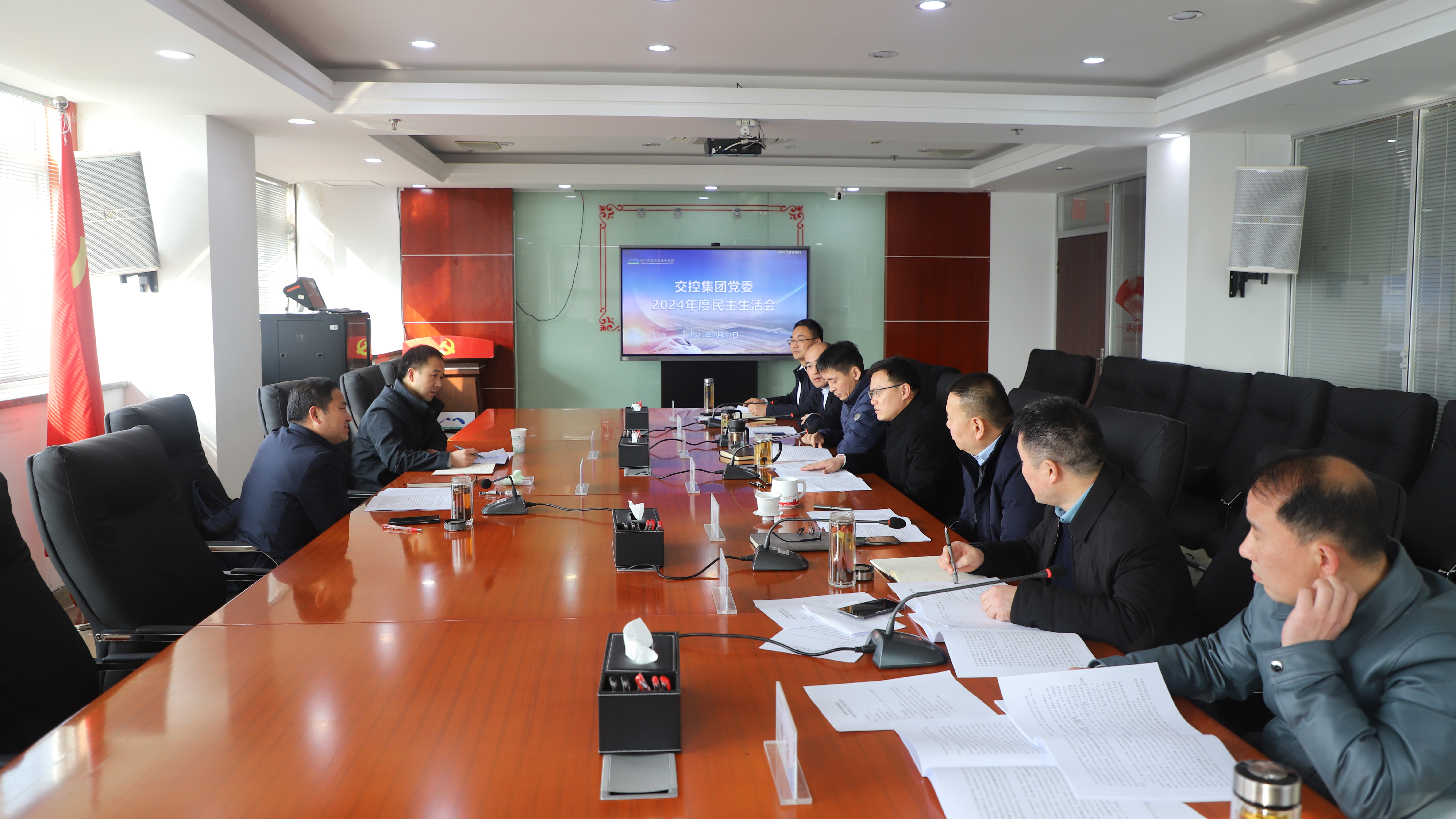 2月27日上午,集團黨委召開2024年度民主生活會。市財政局(市國資委)黨委委員、副局長(副主任) 王振喜,市財政局(市國資委)機關黨委專職副書記于計標到會指導。集團黨委書記、董事長魏孛主持會議并作總結講話。
