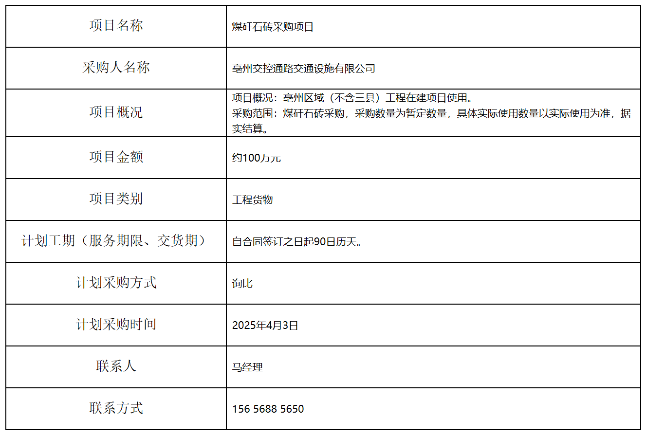 煤矸石磚采購(gòu)項(xiàng)目采購(gòu)計(jì)劃