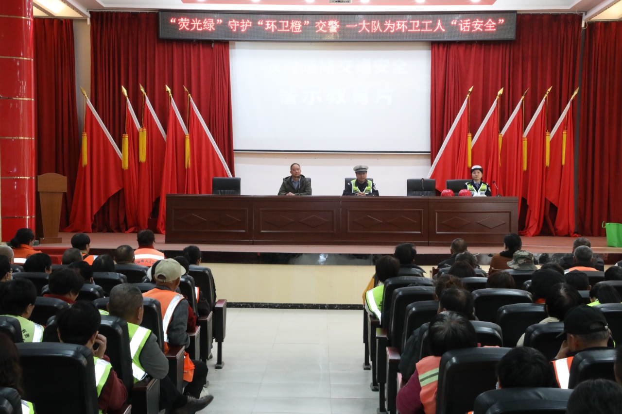 為提高一線環(huán)衛(wèi)工人的交通安全意識(shí),4月3日上午,上善環(huán)保公司聯(lián)合交警一大隊(duì)湯陵中隊(duì)組織開(kāi)展“熒光綠”守護(hù)“環(huán)衛(wèi)橙”交通安全培訓(xùn)活動(dòng)。