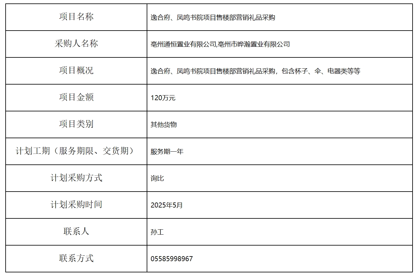 逸合府、鳳鳴書院項(xiàng)目售樓部營(yíng)銷禮品采購(gòu)計(jì)劃