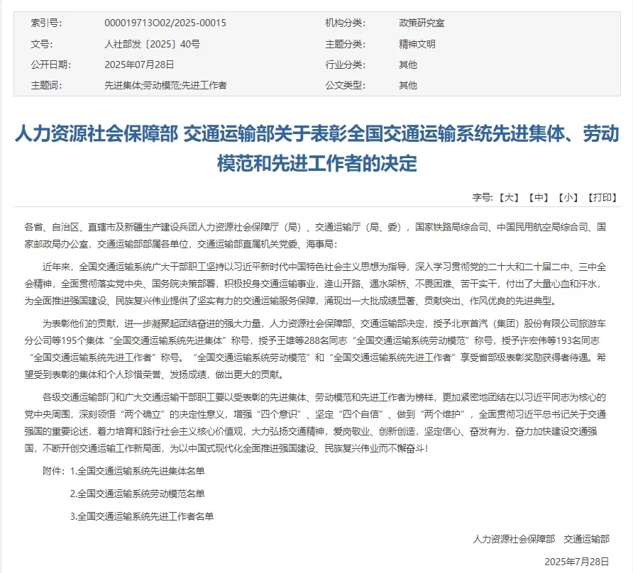 全國交通運輸系統(tǒng)勞動模范
