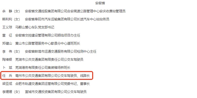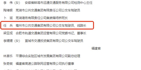 7月30日,交通運輸部召開全國交通運輸系統(tǒng)先進集體、勞動模范和先進工作者表彰大會,亳州公交81路駕駛員任兵榮獲“全國交通運輸系統(tǒng)勞動模范”稱號。