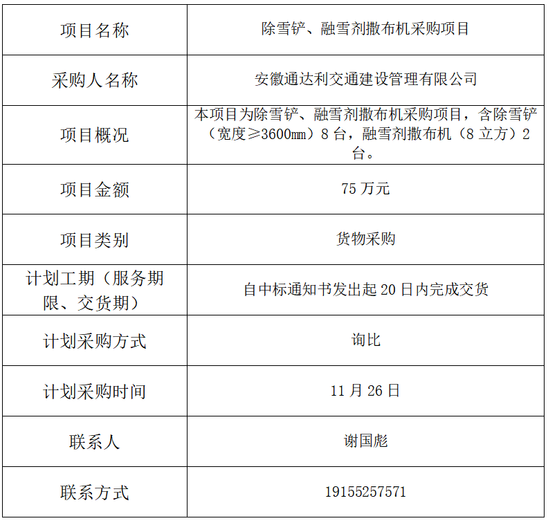 除雪鏟、融雪劑撒布機(jī)采購(gòu)項(xiàng)目采購(gòu)計(jì)劃
