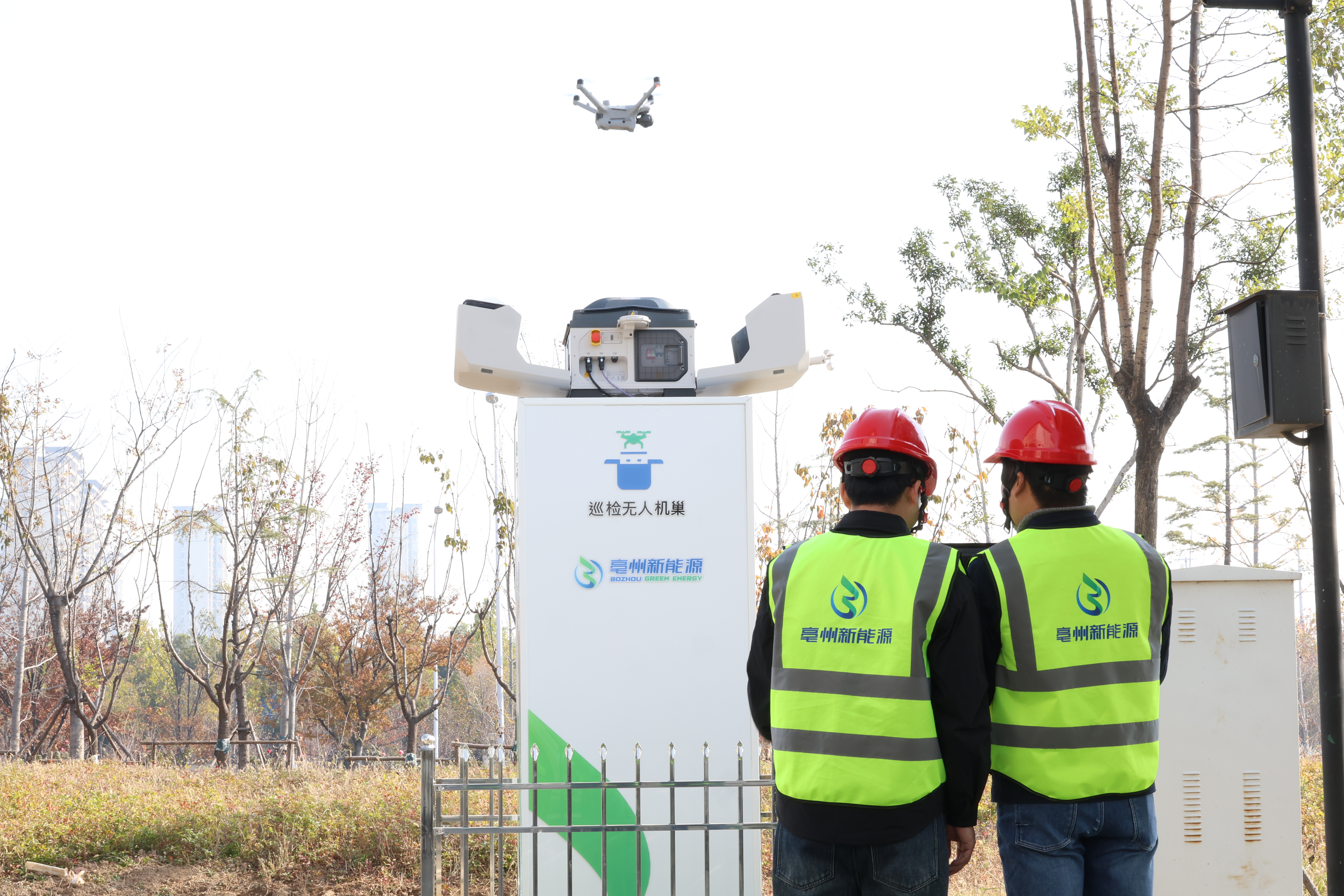 在亳蕪園區(qū)光伏場站和商務(wù)中心光儲充一體化場區(qū)內(nèi),無人機從機巢平穩(wěn)升空,對光伏組件、儲能柜、電纜線路等展開全方位智慧化巡檢。日前,新能源公司智慧“無人機巡檢”示范場景實現(xiàn)首飛。